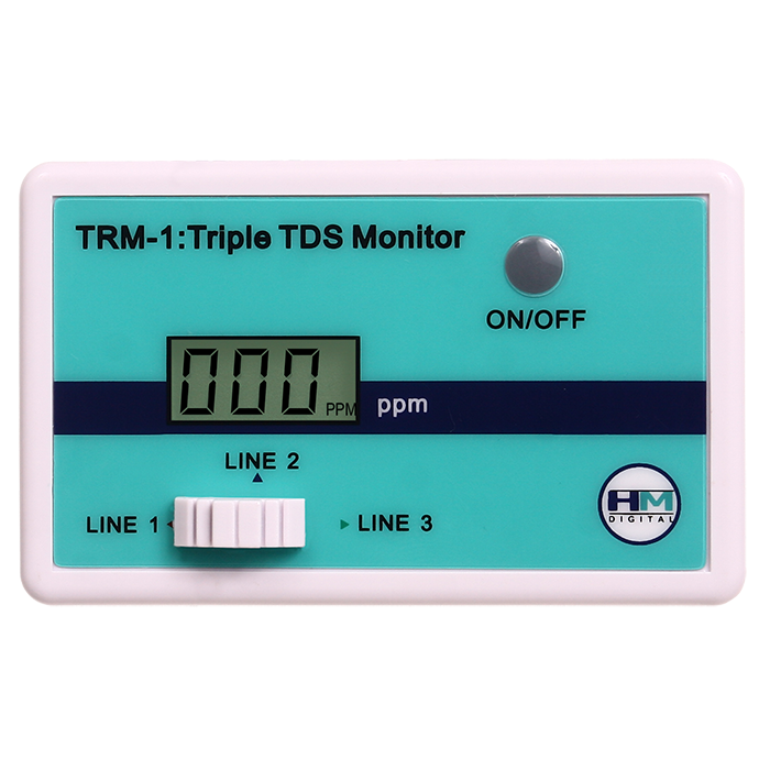 The TRM-1 is a unique monitor offering the user 3 points of contact during the filtration process. This TDS monitor allows for checking TDS levels at 3 points, such as with DI/RO (deionization / reverse osmosis), multiple points in an RO system, and more.